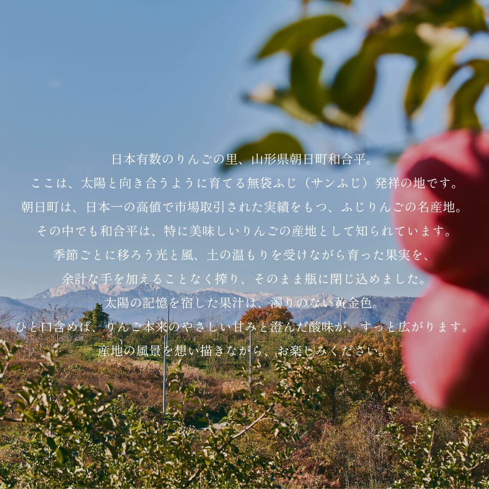 ファーストリリースは、日本有数のりんごの産地・山形県朝日町和合平から届けるApple Juice。